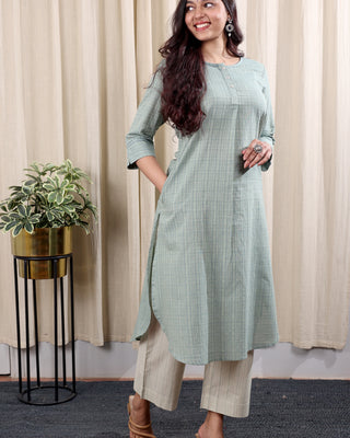 Sea Green Stripes South Cotton Women Long Kurta Long Sleeves WLKLS252C135