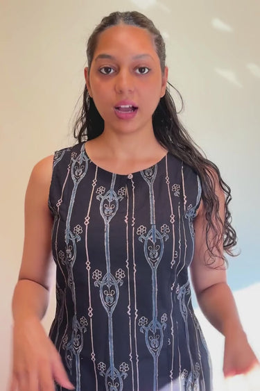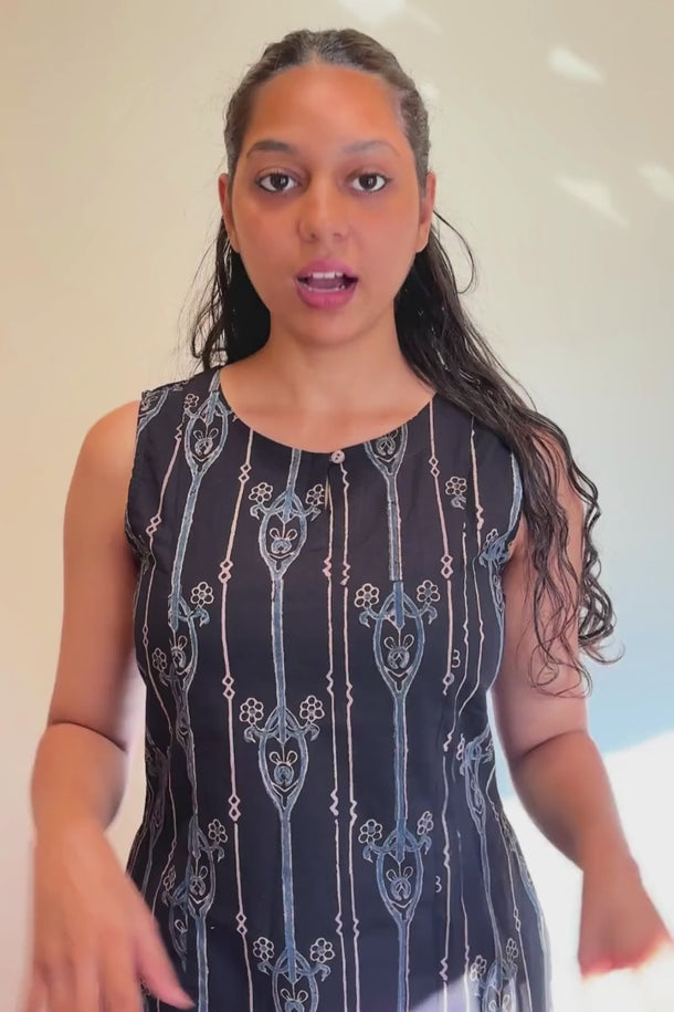 Black Ajrakh Cotton Women Short Dress Sleeveless WSDSL12233