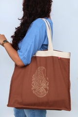 Brown Hand Block Print Duck Cotton Tote Bag TOTBG252C13