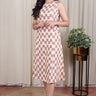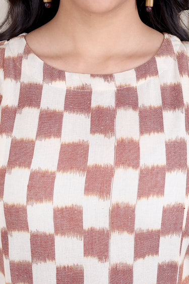 Brown Single Ikkat 40 Cotton Women Midi Dress Sleeveless WDRSL251C6