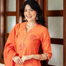 Dark Coral Sanganeri Chanderi Silk Women Long Kurta Long Sleeves WLKLS252C154