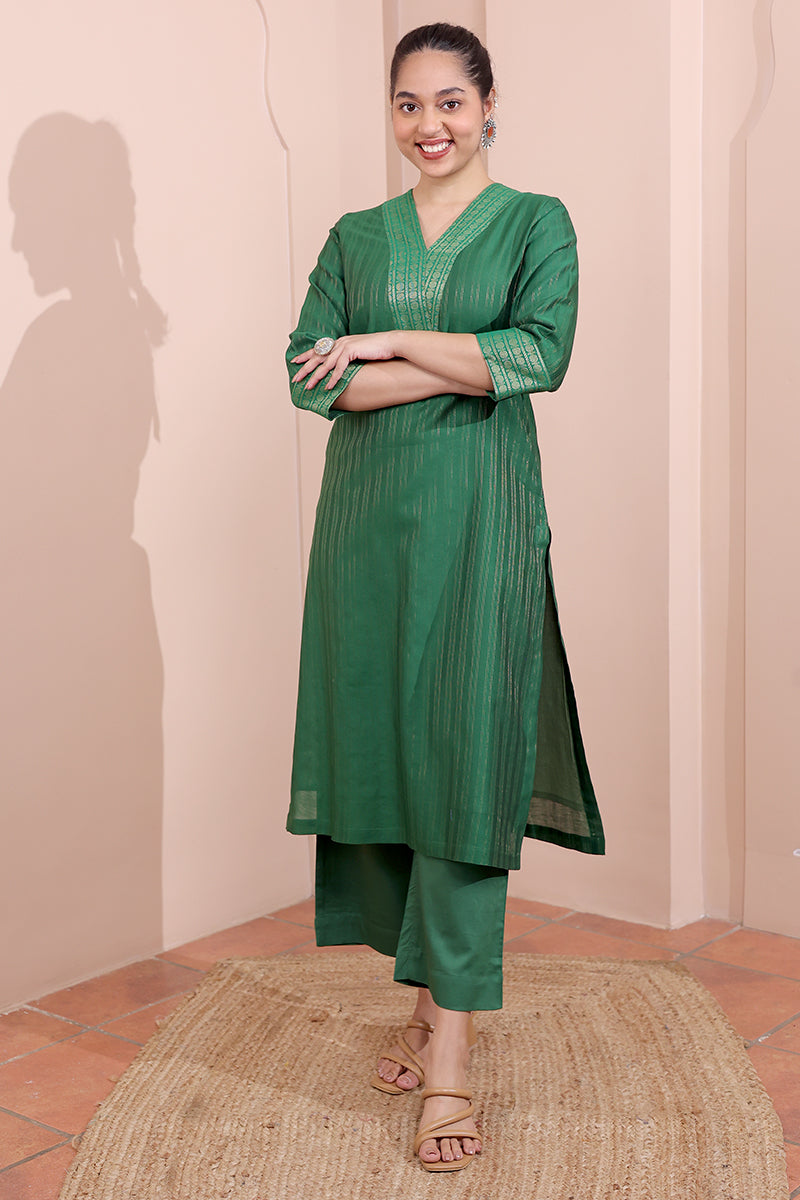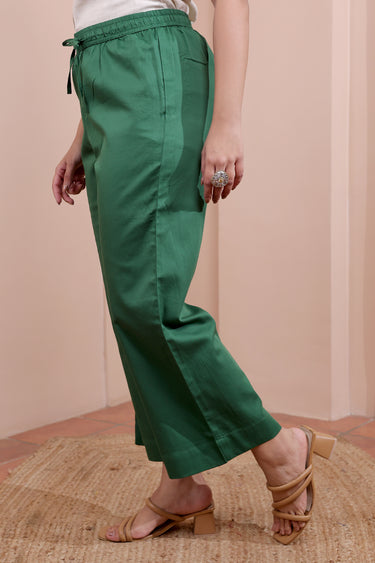 Dark Green Hand Dyed Cotton Satin Women Flared Pant WFLPT252C92