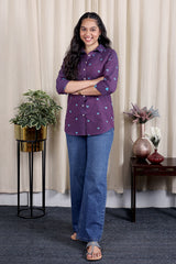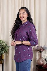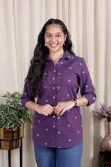 Dark Purple Dobby South Cotton Women Shirt Long Sleeves WSHLS251C3