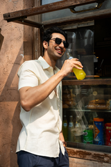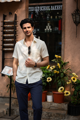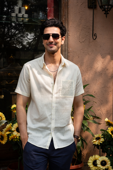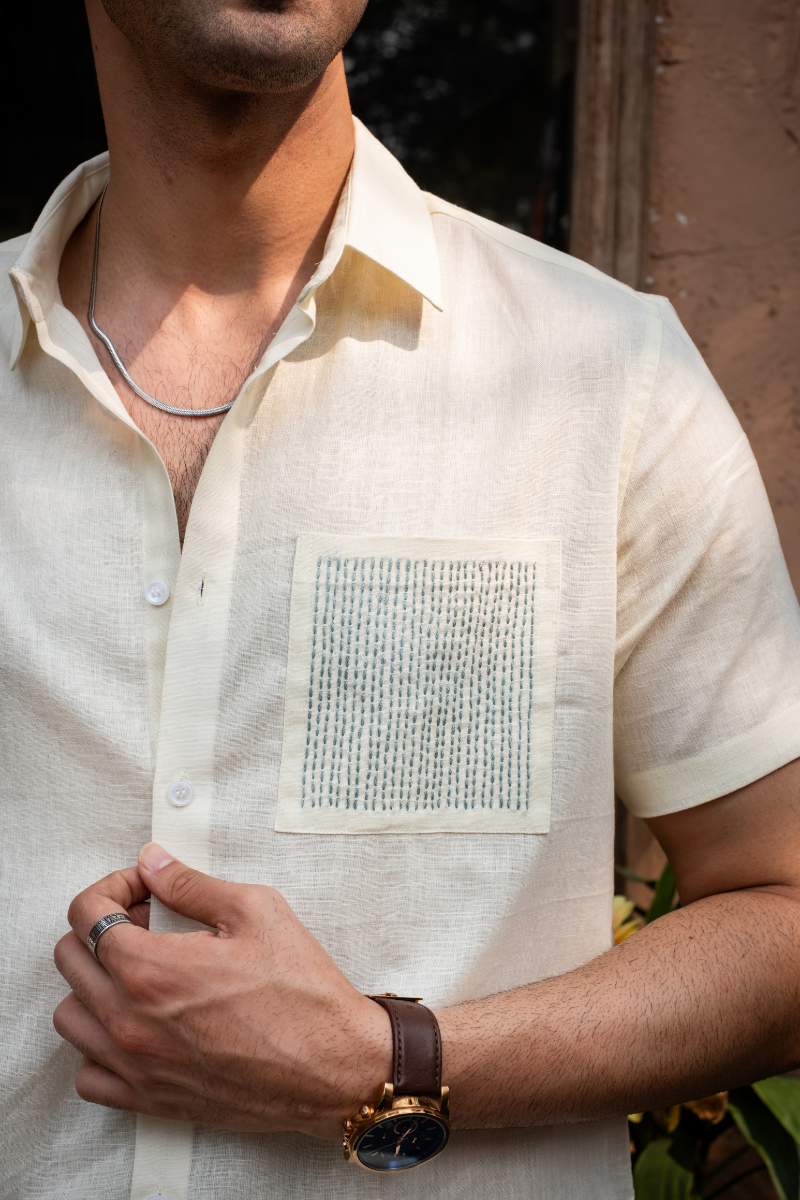 Ecru Hand Embroidery Natural Cotton Linen Men Shirt