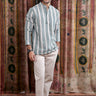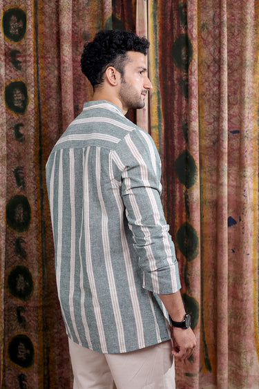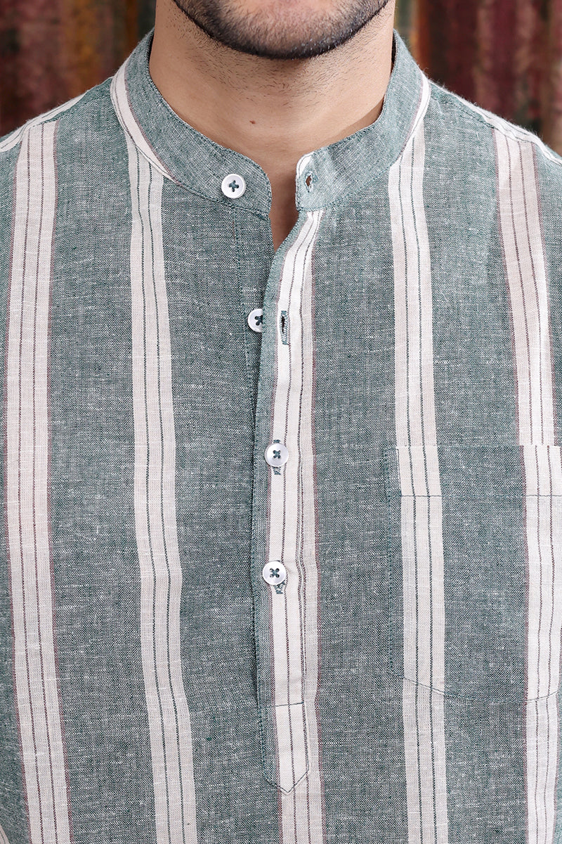 Forest Green Stripes Cotton Linen Men Short Kurta Full Sleeves MSKFS252C62