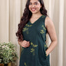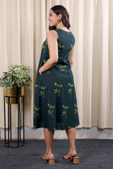 Green Dhabu Cotton Women Midi Dress Sleeveless WDRSL253C5