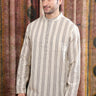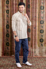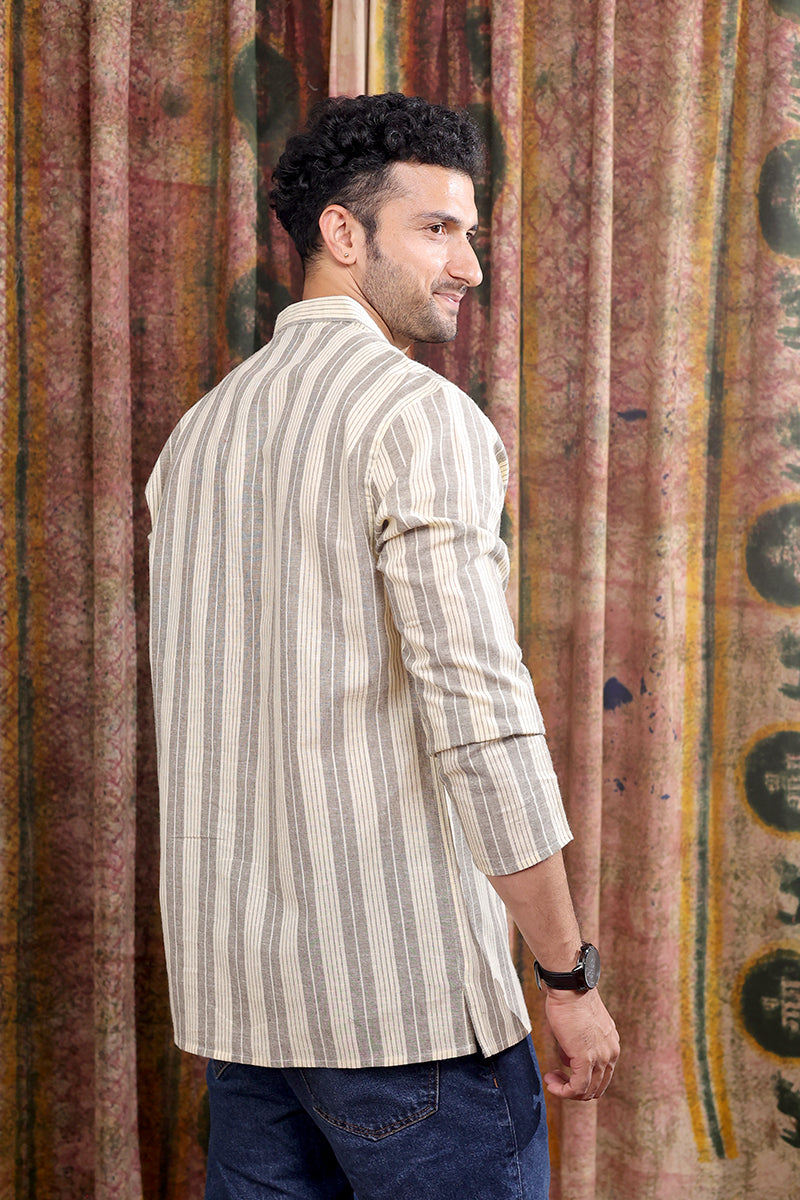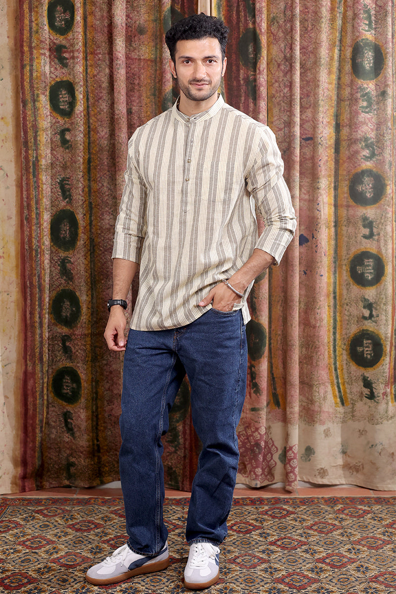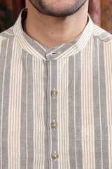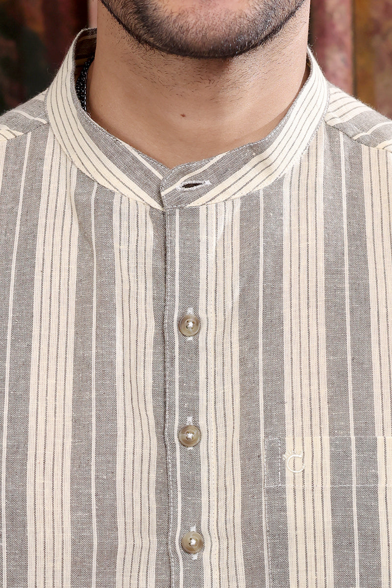 Grey Stripes Cotton Linen Men Short Kurta Full Sleeves MSKFS253C4