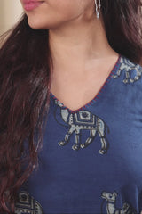 Indigo Dhabu Cotton Women Midi Dress Sleeveless WDRSL253C4