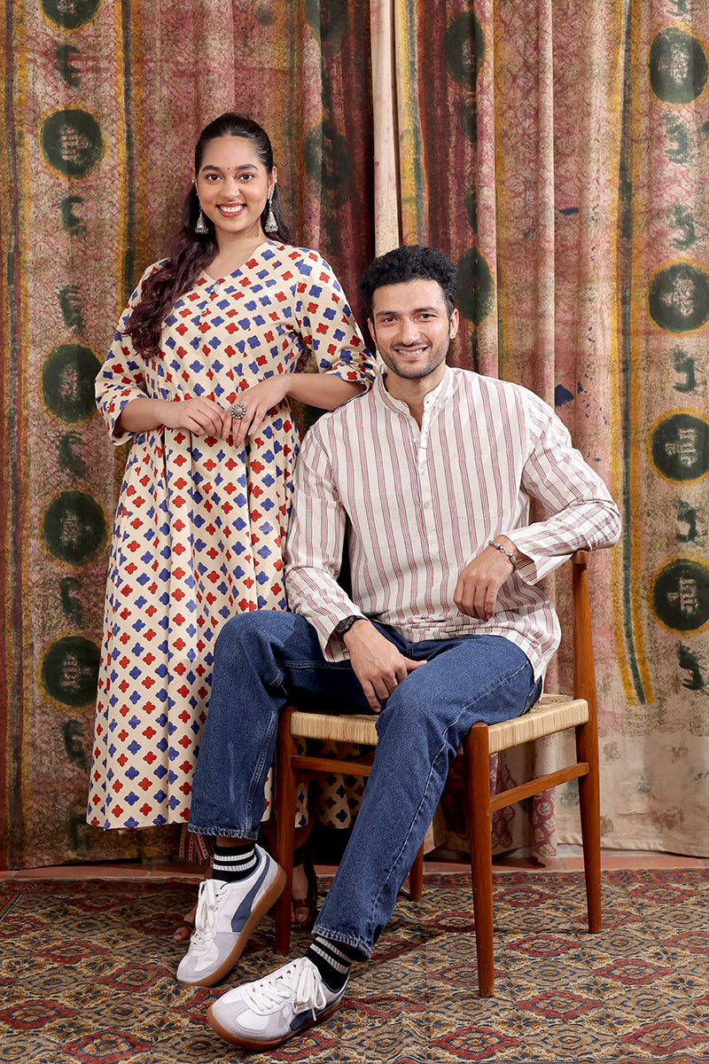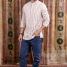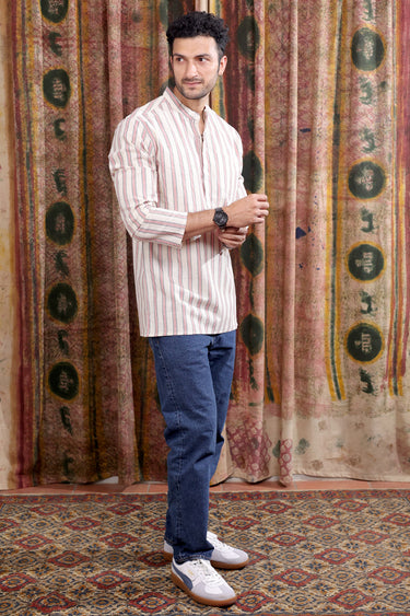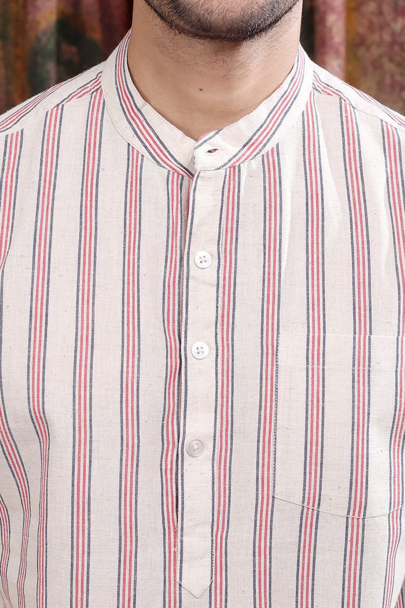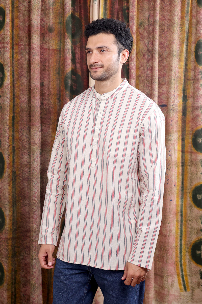 Ivory Stripes Cotton Linen Men Short Kurta Full Sleeves MSKFS252C61