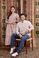 Be aware that colors from Ikkat and Indigo fabrics may transfer to light-colored clothes or Surfaces or on to your Skin. Avoid Wearing Ikkats or Indigos with Light colored bottoms or inners.