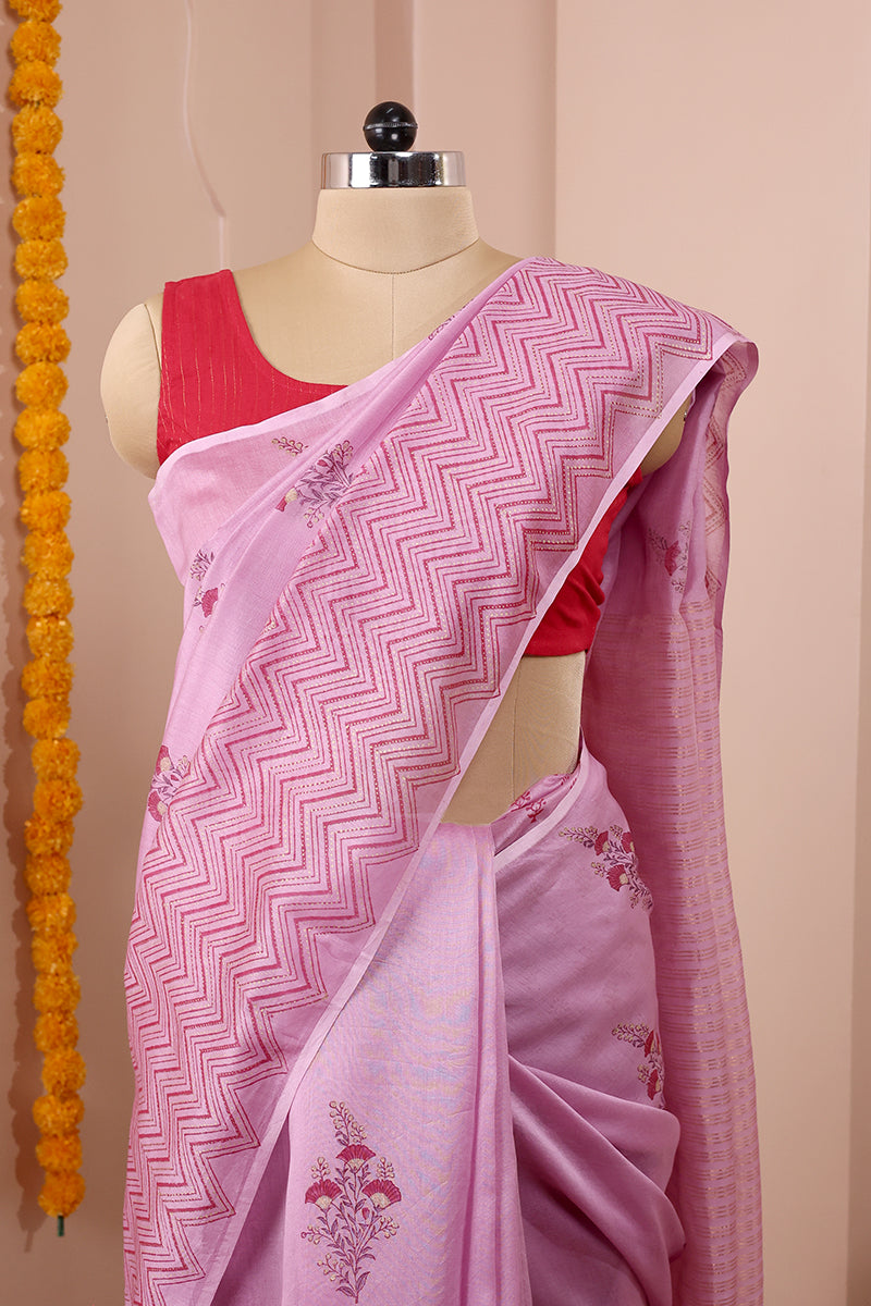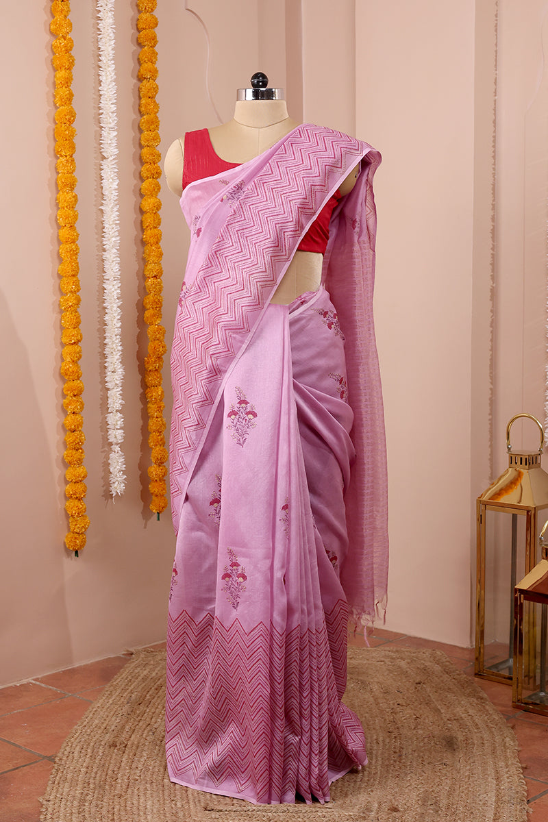 Lavender Sanganeri Chanderi Silk Saree SAREE252C44