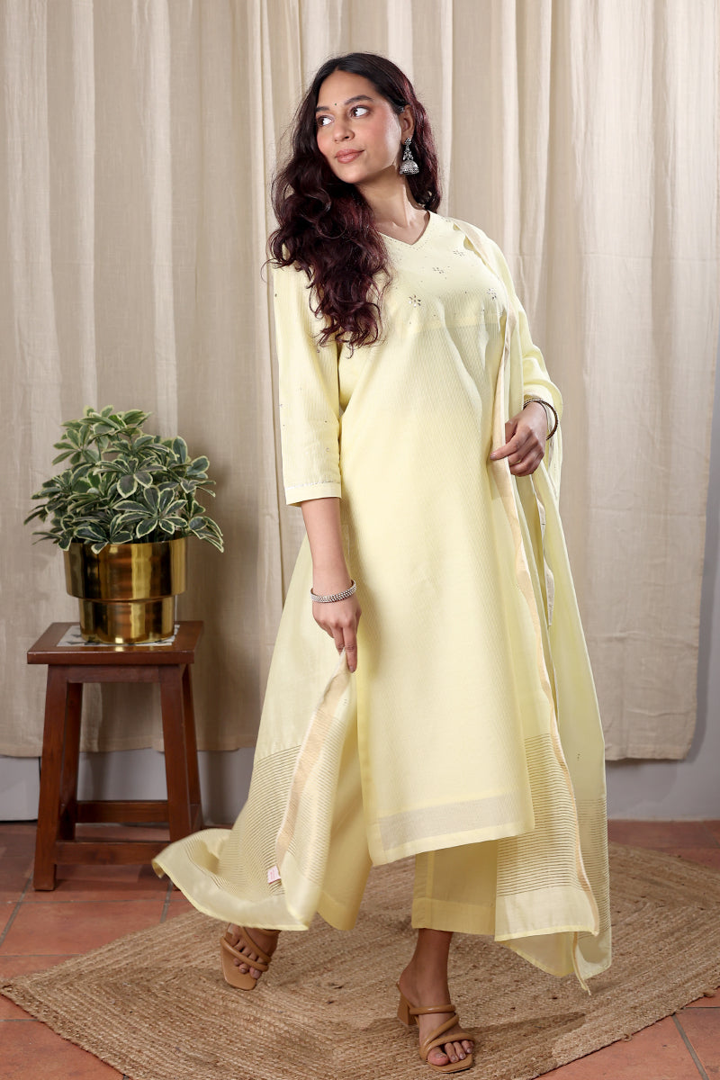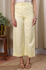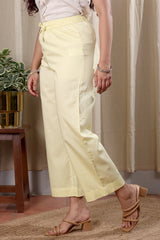 Lemon Yellow Hand Dyed Cotton Satin Women Flared Pant WFLPT252C9