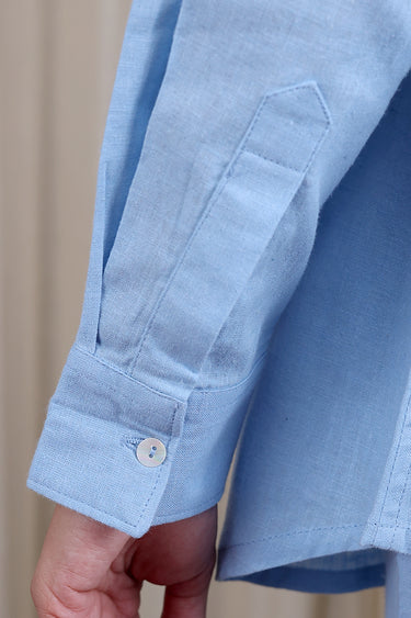 Light Blue Hand Dyed Cotton Linen Women Shirt Long Sleeves WSHLS082411