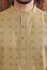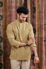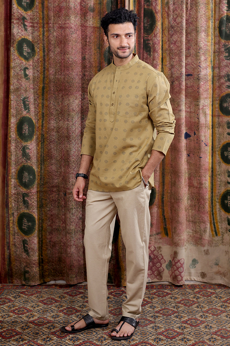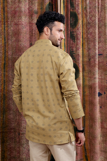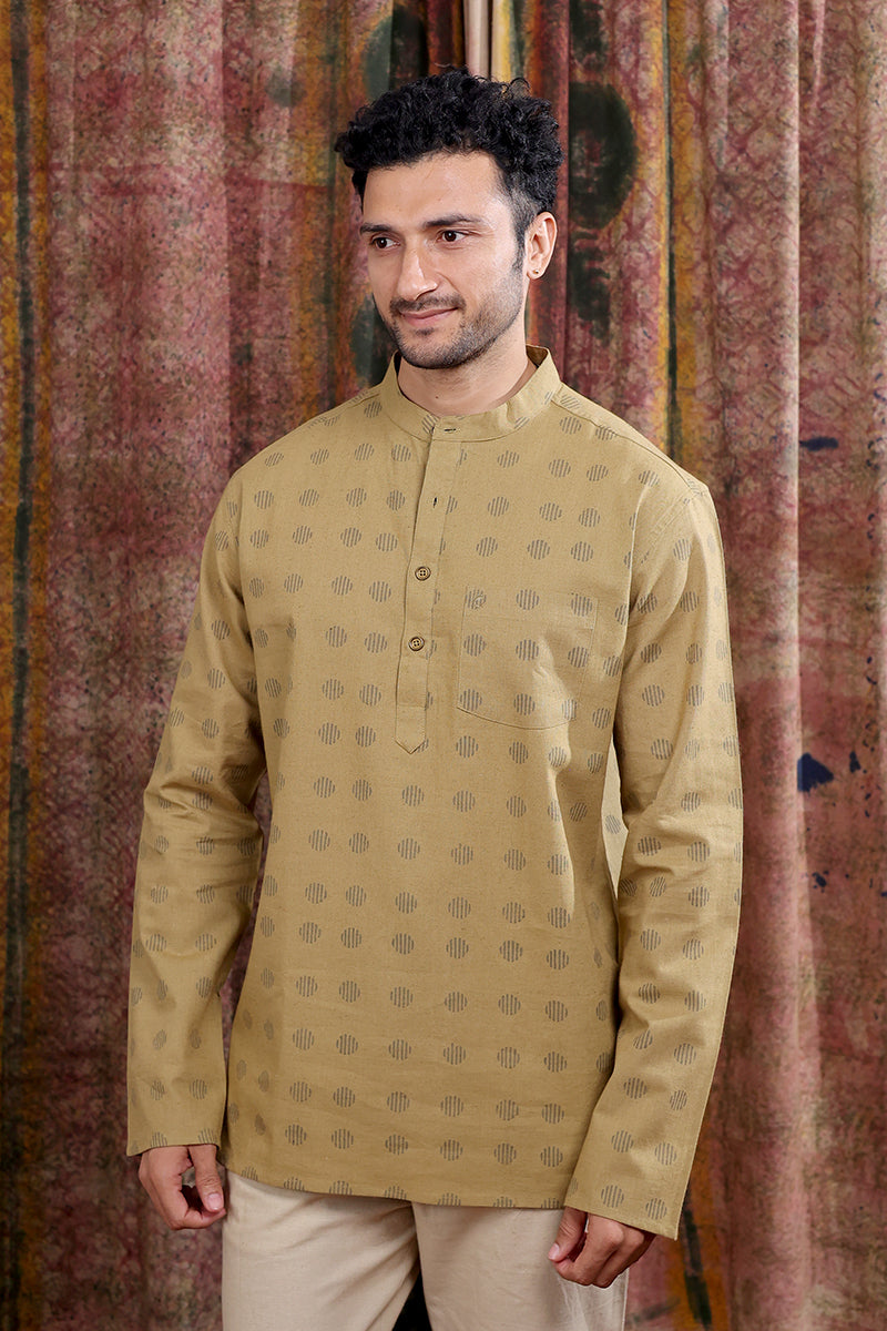 Mud Brown Sanganeri Cotton Linen Men Short Kurta Full Sleeves MSKFS252C65