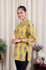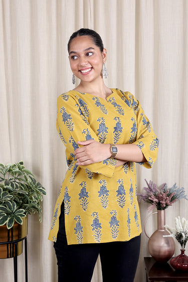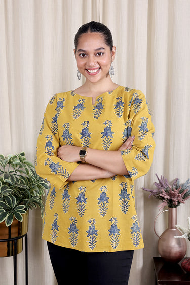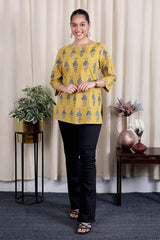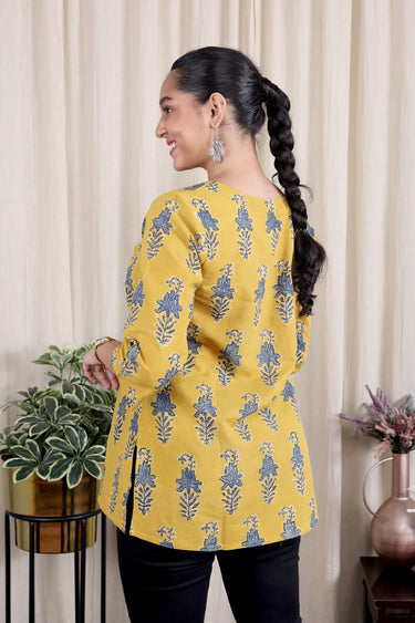 Ochre Ajrakh Cotton Women Kurti Long Sleeves WKILS251C8