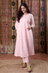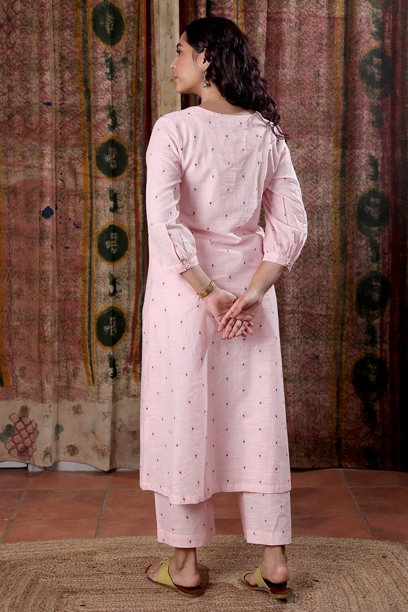 Pink Dobby South Cotton Women Long Kurta Long Sleeves WLKLS252C27