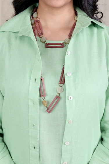 Pista Green Hand Dyed Cotton Linen Women Shirt Long Sleeves WSHLS082410