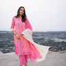 Cotton dobby flared pants in a soft rose stripe, with an elasticated waistband and drawstring so the fit is always just right. Flowy and light — pairs beautifully with the Sanganeri Rose Pink Kurta from the same collection.